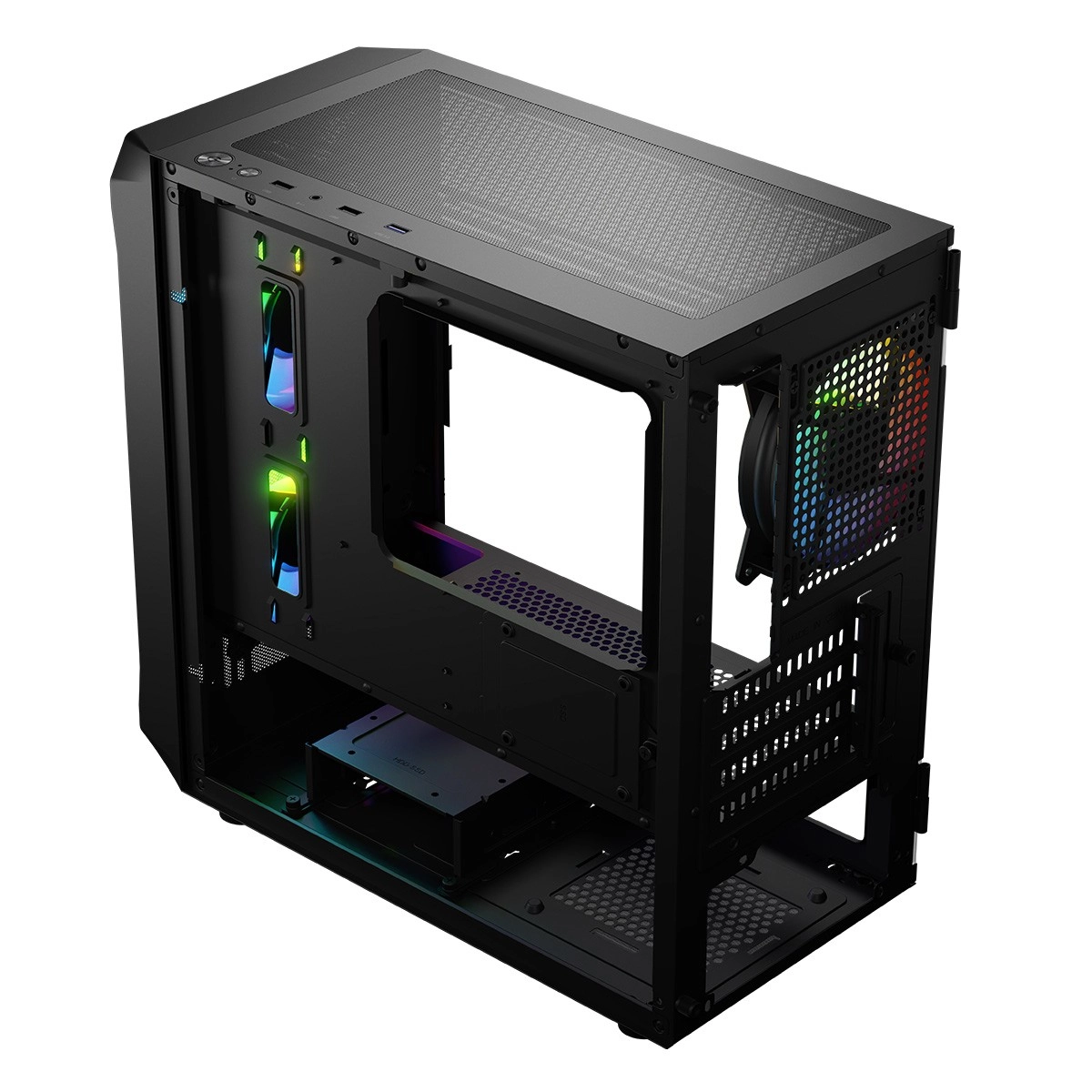 Obudowa gamingowa musi dobrze wyglądać. Dlatego preinstalowane wentylatory ARGB nadają obudowie i stanowisku gracza wyjątkowy wygląd.