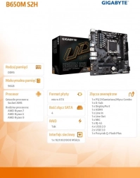 GIGABYTE B650M S2H to niezawodna podstawa nowoczesnego PC na platformie AMD AM5. Płyta łączy wydajność i efektywność dzięki cyfrowemu VRM, obsługuje dwukanałową DDR5 i umożliwia wysokie prędkości transferu dzięki gniazdu M.2 PCIe 4.0 x4. Nie brakuje wysokiej jakości komponentów audio oraz odseparowanych ścieżek dźwiękowych dla czystego brzmienia.