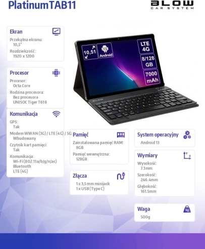 Tablet Platinum TAB11 4G oferuje zaawansowaną łączność i elegancki design. Wyposażony w 10,5‑calowy wyświetlacz, łącze 4G oraz stylowe etui, jest idealny do pracy i rozrywki w podróży.