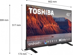 Ten 40-calowy telewizor LED TOSHIBA wprowadza inteligentną rozrywkę do każdego domu. Ekran główny z obsługą popularnych aplikacji, takich jak YouTube, Google Play i Disney+, zapewnia szybki dostęp do Twoich treści. Wąska ramka i nowoczesny, minimalistyczny wygląd doskonale pasują do współczesnych wnętrz i oszczędzają miejsce.