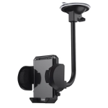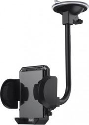 Uniwersalny uchwyt samochodowy na telefon umożliwia bezpieczne zamocowanie smartfona na przedniej szybie lub kratce nawiewu za pomocą elastycznego ramienia z przyssawką, co ułatwia ustawienie pozycji.
