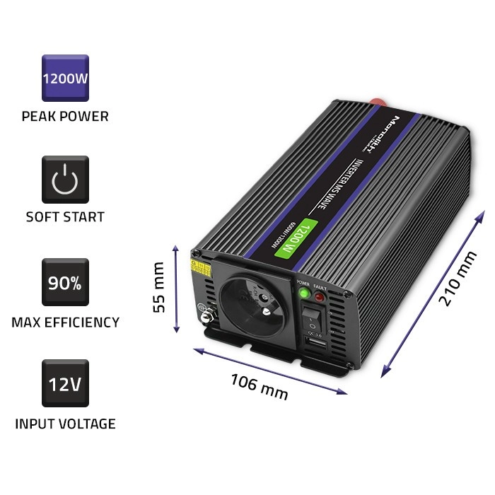 Wybierając odpowiednią przetwornicę, warto zwrócić uwagę na moc oraz napięcie akumulatora, które muszą być zgodne z danymi podanymi na przetwornicy, aby nasze urządzenia miały właściwe warunki pracy. Istotna jest także liczba podłączonych urządzeń, np. przy podłączeniu laptopa i drukarki należy zsumować moc obu urządzeń. Pamiętaj, że pobór mocy podłączonego urządzenia nie powinien przekraczać 85% mocy znamionowej przetwornicy.