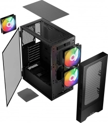 Eleganckie oświetlenie ARGB — Zmień kolory oświetlenia według swoich preferencji za pomocą przycisku RESET na panelu obudowy. Dodając wentylatory RGB, uzyskasz estetyczny wygląd i styl gamingowy.