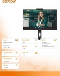 Monitor AOC Q27P3QW jest wyposażony w zintegrowaną kamerę w górnej części wyświetlacza, co czyni go doskonałym narzędziem do wideokonferencji i spotkań online.