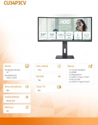 Monitor AOC CU34P3CV zapewnia znakomitą jakość obrazu i płynne działanie dzięki swojemu 34-calowemu zakrzywionemu panelowi VA. Dzięki częstotliwości odświeżania 100Hz ciesz się płynnymi wrażeniami graficznymi idealnymi do gier i multimediów. Monitor ten wyposażony jest w opcje połączeń, które umożliwiają łatwe przełączanie między różnymi urządzeniami, w tym HDMI, DP i USB-C.