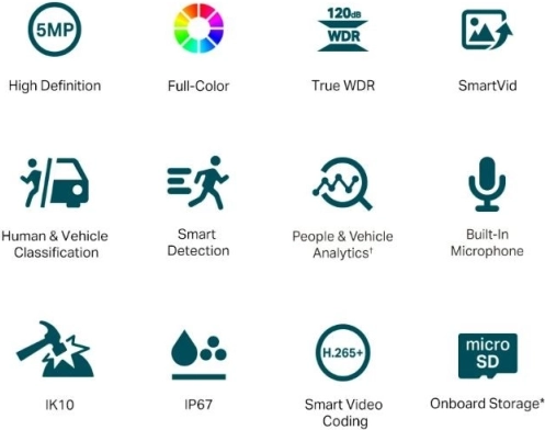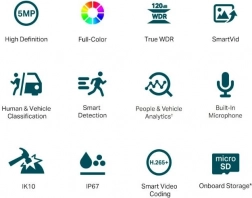 Wysoka jakość 5MP: Kamera zapewnia krystalicznie czyste detale w wysokiej rozdzielczości, rejestrując każdy moment w pełnym kolorze także w ciemności.