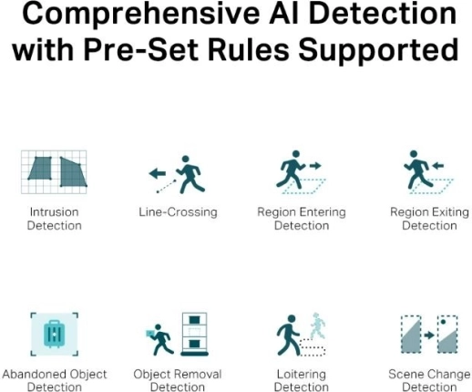 Kluczowe funkcje AI: Zaawansowane algorytmy umożliwiają rozpoznawanie ludzi i pojazdów, dzięki czemu otrzymujesz dokładniejsze zdarzenia i możesz dostosować reguły alarmów do potrzeb.