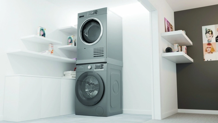- Oszczędność miejsca – umożliwia montaż suszarki nad pralką.