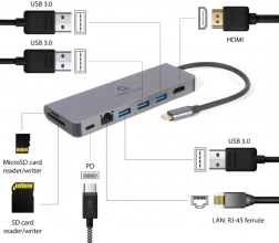 Rozszerz możliwości swojego urządzenia z USB‑C jednym eleganckim hubem. Otrzymasz obraz przez HDMI nawet w UHD 4K, szybkie transfery danych dzięki USB 3.1 Gen 1 (5 Gb/s), stabilne przewodowe połączenie z siecią przez Gigabit LAN oraz wygodny dostęp do kart pamięci SD i microSD.
