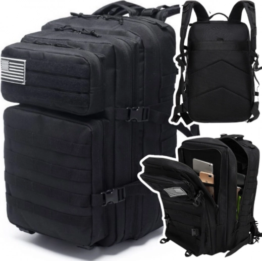 Uniwersalny taktyczny plecak 40–60 l w kolorze czarnym do turystyki, wędrówek i codziennego użytkowania. Oferuje wytrzymały poliester, ergonomiczny system nośny, wentylację pleców oraz modułowy system MOLLE do rozszerzenia pojemności. Dzięki paskom kompresyjnym, wodoodpornej konstrukcji i sprytnemu układowi wnętrza bezpiecznie przeniesiesz wszystko, czego potrzebujesz.