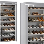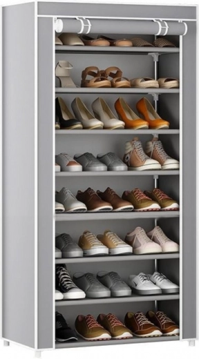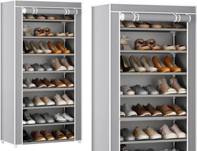 Konstrukcja z stalowych rurek, plastikowych łączników oraz trwałej włókniny zapewnia stabilność i długą żywotność. Wybrane półki można wyjąć, aby przechowywać wyższe buty, takie jak kozaki czy botki.