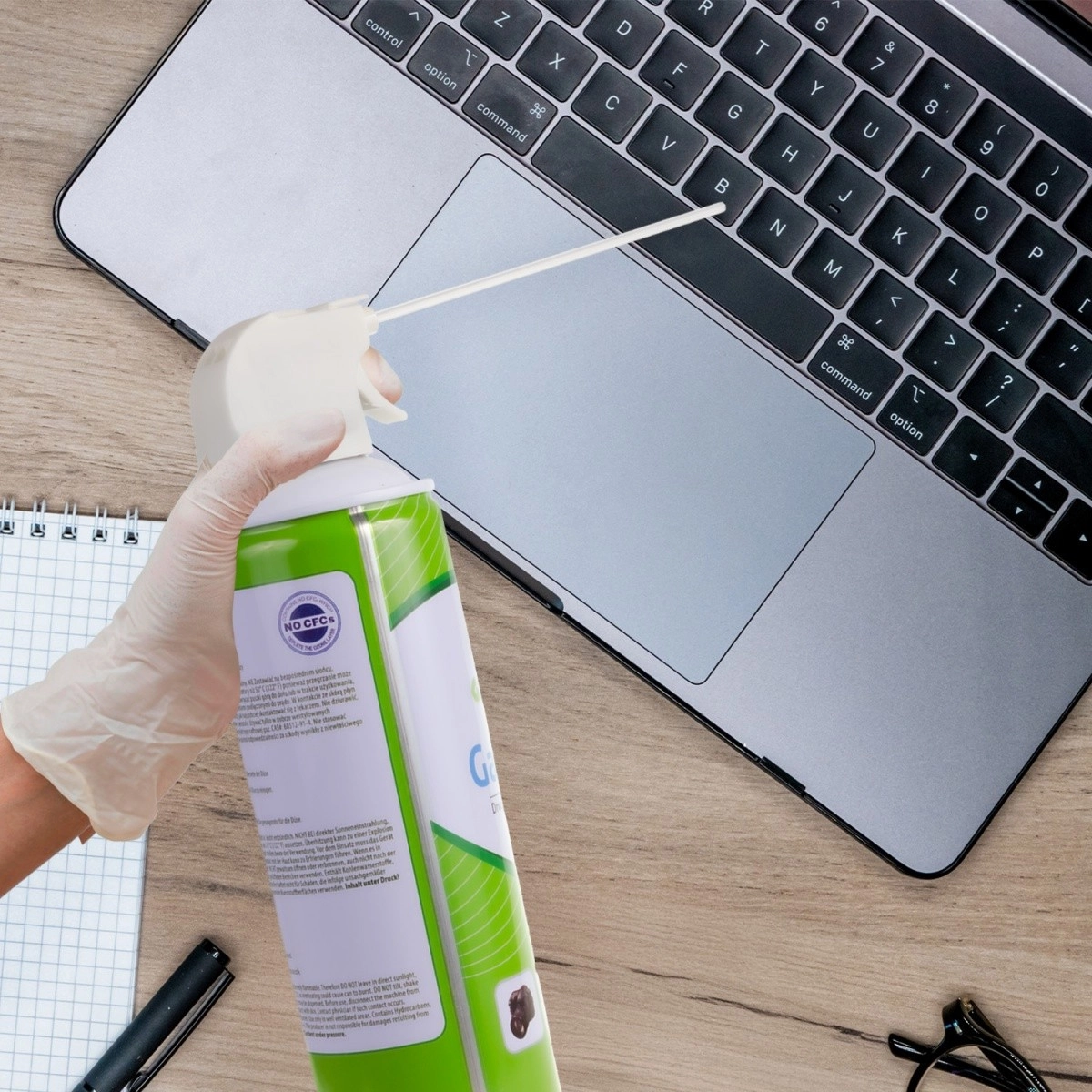 Sprężone powietrze GREENBLUE w puszce o pojemności 400 ml to idealne rozwiązanie do regularnej konserwacji wrażliwej elektroniki. Dzięki cienkiej dyszy kapilarnej skierujesz strumień powietrza dokładnie tam, gdzie trzeba, i z łatwością usuniesz kurz, okruszki czy kłaczki z wąskich szczelin i kątów.