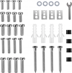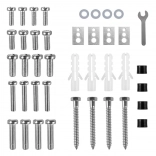 Zintegrowana poziomnica i kompletny zestaw montażowy w opakowaniu ułatwiają instalację i pomagają precyzyjnie wypoziomować uchwyt na ścianie.