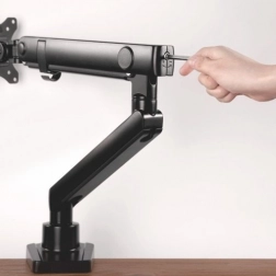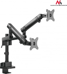 Udoskonal swoje stanowisko pracy dzięki uchwytowi na dwa monitory, który pozwala na wygodne ustawienie ekranów obok siebie lub jeden nad drugim, w zależności od potrzeb. Solidne, aluminiowe ramiona oraz wytrzymały zacisk biurkowy zapewniają stabilność nawet przy częstych regulacjach. Montaż jest prosty – uchwyt przymocujesz do krawędzi biurka lub do przelotki w blacie.