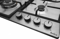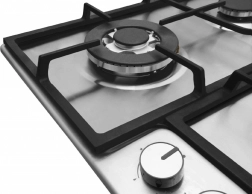 Stabilność i bezpieczeństwo są gwarantowane dzięki stabilnym żeliwnym rusztom, które ułatwiają manipulację garnkami. Zapalanie palników jest proste i wygodne dzięki zintegrowanej zapalarce elektrycznej w pokrętle.