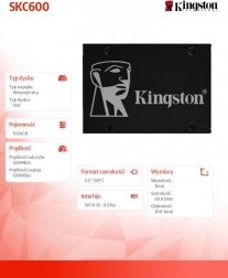 SSD Kingston KC600 posiada format 2,5" i interfejs SATA 3.0, który jest wstecznie kompatybilny z poprzednimi wersjami SATA. Ten dysk wykorzystuje najnowszą technologię pamięci NAND 3D TLC i oferuje pełen zestaw zabezpieczeń, w tym szyfrowanie sprzętowe kluczem 256-bitowym oraz technologie TCG Opal i eDrive.