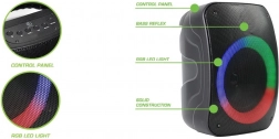 - Różne tryby: Bluetooth, radio FM, pendrive USB, karta microSD, AUX, karaoke.
