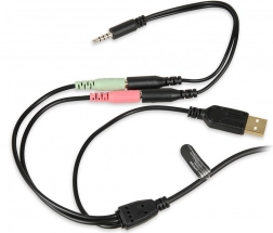 USB zasila subtelne podświetlenie, a podwójny jack 3,5 mm zapewnia czysty przesył dźwięku. W zestawie znajduje się także przejściówka na pojedynczy combo jack 3,5 mm.