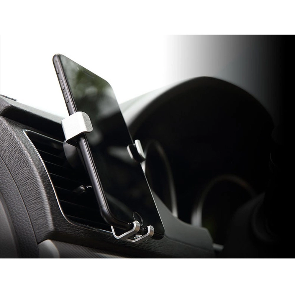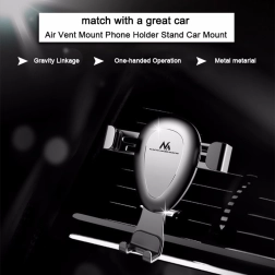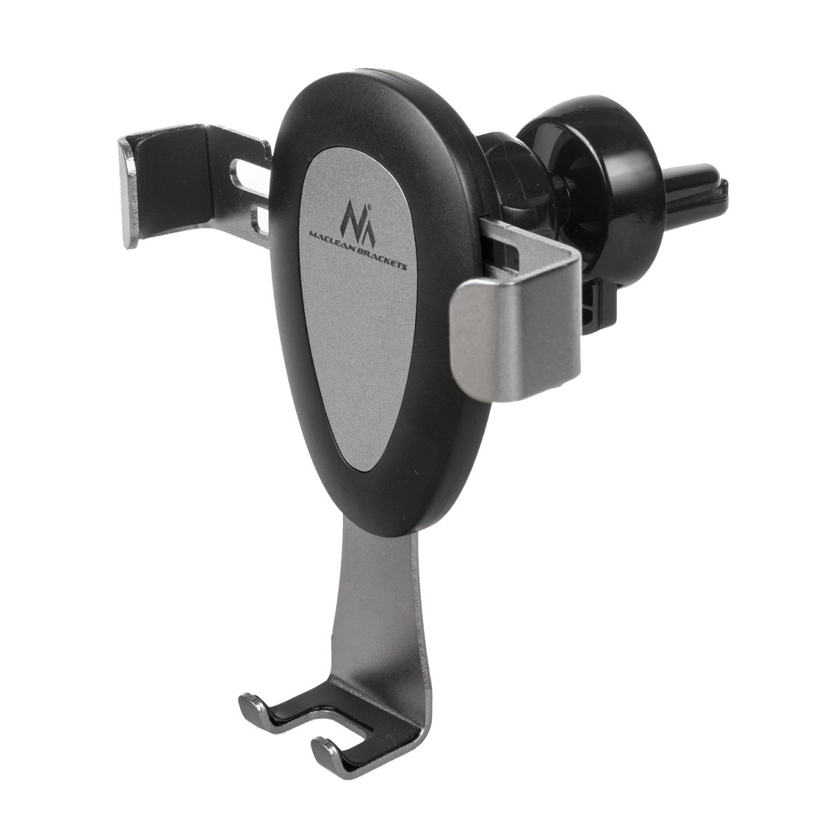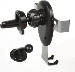Grawitacyjny uchwyt samochodowy do urządzeń mobilnych, montowany na kratce nawiewu lub na przedniej szybie. Wystarczy umieścić w nim telefon lub smartfon, a szczęki automatycznie się zamkną. Wyposażony w obrotową głowicę, która pozwala ustawić telefon pod dowolnym kątem. W zestawie znajduje się także podstawka umożliwiająca montaż np. na desce rozdzielczej.