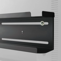 Półka 2 w 1 z dwiema opcjami montażu: na ścianie lub z tyłu telewizora. Półka składa się z dwóch poziomów – górna półka ma dodatkowo antypoślizgową podkładkę, która jeszcze lepiej chroni umieszczone na niej przedmioty przed upadkiem. Uniwersalny design łatwo dopasowuje się do każdego wnętrza. Dzięki tej półce łatwiej zorganizować przestrzeń wokół telewizora. Duża powierzchnia zapewnia wystarczająco miejsca m.in. na router, pilot do telewizora, listwę zasilającą i inne przedmioty. Maksymalne obciążenie półki wynosi 2 kg.