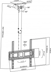 Uniwersalny sufitowy uchwyt do telewizora MACLEAN MC-943 jest idealny do telewizorów LCD/LED i monitorów o przekątnej 32–50 i udźwigu do 35 kg. Oferuje regulację nachylenia, kompatybilność ze standardami VESA od 50x50 do 400x400 i jest świetnym wyborem do domu oraz przestrzeni komercyjnych – restauracji, hoteli, sklepów czy na lotnisko. W zestawie znajduje się kompletny zestaw śrub oraz polska instrukcja montażu.