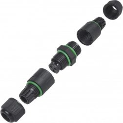 Dzięki solidnej konstrukcji i łatwemu montażowi złączka doskonale sprawdza się przy zewnętrznych instalacjach oświetlenia LED, zasilaniach oraz tymczasowym lub stałym przedłużaniu okablowania. Ryflowany korpus zapewnia pewny chwyt i stabilne dokręcenie, co minimalizuje ryzyko nieszczelności.