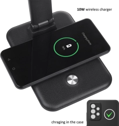 Dzięki wbudowanej ładowarce Qi możesz łatwo ładować swoje kompatybilne urządzenia podczas korzystania z lampy biurkowej.