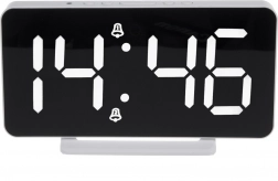 Nowoczesny budzik LED z lustrzaną przednią powierzchnią jest idealny do sypialni, salonu i biura. Oferuje trzy tryby wyświetlania – płynne przełączanie czasu, daty i temperatury, stałe wyświetlanie wybranej wartości lub ciągłe wyświetlanie czasu z możliwością szybkiego podglądu daty bądź temperatury. Dzięki dużym białym cyfrom czas jest czytelny nawet z większej odległości.