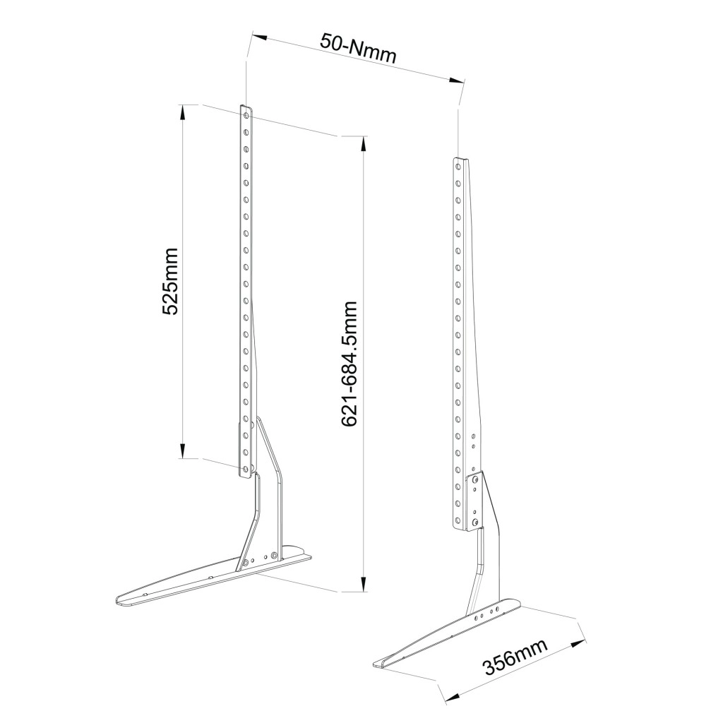 Montaż jest szybki i łatwy dzięki kompatybilności ze standardem VESA do 800×400. Nogi nadają się do większości telewizorów o przekątnej 23–75" i maksymalnej masie 40 kg, dzięki czemu obejmują szeroką gamę nowoczesnych modeli.
