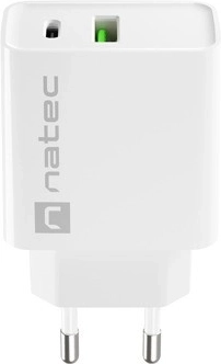 Ładowarka sieciowa NATEC Ribera 20W, 1× USB‑C + 1× USB‑A, biała