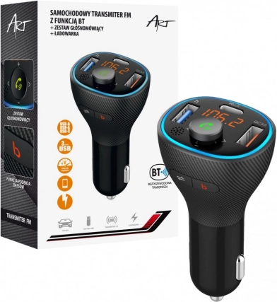 Ciesz się ulubioną muzyką i bezpiecznymi rozmowami podczas jazdy. Ten nadajnik FM wystarczy podłączyć do gniazda 12/24 V, sparować przez Bluetooth 5.0 (A2DP, AVRCP, HFP) i ustawić wolną częstotliwość FM w radiu samochodowym. Muzykę możesz odtwarzać zarówno z telefonu, jak i z pamięci USB, a obsługę uzupełnia jasny wyświetlacz LED 18×6 mm.