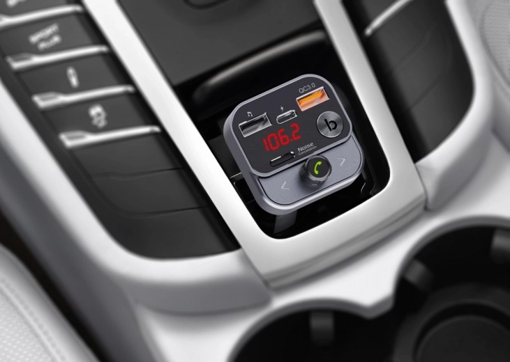 Praktyczny samochodowy transmiter FM z Bluetooth 5.0 pozwala odtwarzać muzykę z telefonu lub z USB bezpośrednio w radiu samochodowym, a jednocześnie szybko ładować urządzenia. Oferuje szybkie ładowanie QC 3.0, stabilne połączenie przez Bluetooth 5.0, rozmowy hands‑free dzięki wbudowanemu mikrofonowi oraz jasny wyświetlacz LED dla łatwej obsługi.