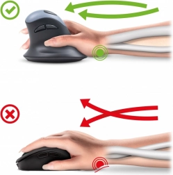 Pionowy kształt utrzymuje nadgarstek w neutralnej pozycji, zmniejsza nacisk na nerwy i pomaga zapobiegać bólowi oraz zespołowi cieśni nadgarstka.
