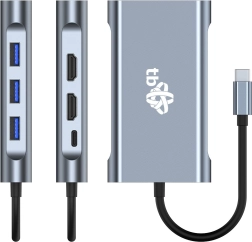 Rozszerz łączność swojego laptopa, tabletu lub telefonu z pojedynczym portem USB‑C. Ten wielofunkcyjny hub USB‑C 8‑w‑1 umożliwi podłączenie monitorów, projektora, myszy, klawiatury, dysku zewnętrznego, aparatu i kabla sieciowego – wszystko naraz i bez instalacji sterowników. Dzięki wsparciu USB‑C PD 100 W jednocześnie zasila urządzenie główne, podczas gdy pozostałe peryferia działają pełną parą.