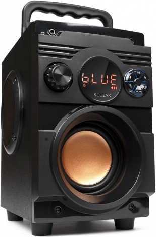 Przenośny głośnik Bluetooth BassBlaster SQ1001 o mocy 18 W zapewnia mocny bas, Bluetooth 5.1 + EDR dla stabilnego połączenia, radio FM z automatycznym strojeniem oraz nowoczesne ładowanie USB‑C. Dzięki baterii do 7 godzin, trybom EQ i wytrzymałej obudowie z MDF idealnie sprawdzi się na tarasie, pikniku i plaży.