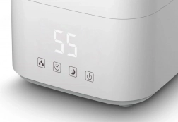 Intuicyjny dotykowy panel LED umożliwia sterowanie ilością wytwarzanej mgiełki i informuje o poziomie nawilżenia. Czterolitrowy zbiornik na wodę z wygodnym systemem górnego napełniania jest bardzo łatwy w czyszczeniu i obsłudze. Wymienny filtr żywiczny zmiękcza wodę i ogranicza powstawanie osadów.