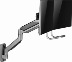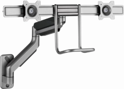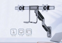 Ten uchwyt ścienny umożliwia łatwe i ergonomiczne ustawienie w celu zmniejszenia obciążenia. Uchwyt na dwa monitory oferuje elastyczność obracania, wysuwania i pochylania ramion tak, aby odpowiadały Twoim potrzebom. Ekrany można obrócić z pozycji poziomej do pionowej, co ułatwia czytanie i poprawia komfort pracy.