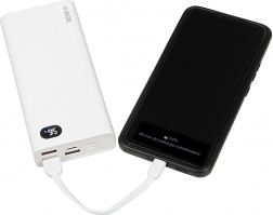 Ciesz się swobodą bez gniazdka. Ten kompaktowy i wytrzymały powerbank o dużej pojemności 20 000 mAh niezawodnie naładuje Twój telefon, tablet oraz słuchawki. Dzięki wsparciu szybkiego ładowania Power Delivery (PD) i Quick Charge (QC) uzupełnisz energię naprawdę szybko, i to poprzez uniwersalne porty USB‑C oraz USB‑A. Czytelny wyświetlacz LCD dokładnie pokaże pozostałą pojemność, więc zawsze wiesz, kiedy czas go doładować.