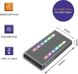 Elegancka i solidna ochrona dla Twoich cennych danych. Obudowa z wysokiej jakości aluminium wspiera odprowadzanie ciepła, a design z RGB LED pozwala zmieniać kolory według potrzeb. Kompaktowa forma ułatwia przenoszenie, a ochrona przed uszkodzeniami jest oczywistością.