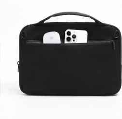 Stylowa i funkcjonalna torba na laptop dla profesjonalistów i studentów, którzy szukają niezawodnej ochrony i nowoczesnego wyglądu. Trwały materiał RPET z wodoodporną powłoką oraz wodoszczelny zamek chronią zawartość przed deszczem i zabrudzeniami, a miękkie wypełnienie bezpiecznie stabilizuje laptop do 16".