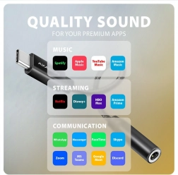 Delektuj się muzyką w wyższej jakości niż ze standardowego wyjścia w laptopie. AXAGON ADA‑HC z wydajnym Hi‑Res DAC 384 kHz/32 bit zapewnia szeroki zakres dynamiki i niskie zniekształcenia, dzięki czemu bezstratne formaty jak FLAC, WAV, ALAC oraz strumienie premium ze Spotify, Apple Music, YouTube Music czy Amazon Music brzmią pełniej. Dzięki złączu 3,5 mm TRRS podłączysz słuchawki lub zestaw słuchawkowy z mikrofonem i wygodnie przeprowadzisz rozmowy w WhatsApp, Messenger, FaceTime, Skype, Zoom, MS Teams, Google Meet lub Discord.