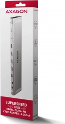 AXAGON HMC-10HLS LONGER to uniwersalne rozwiązanie dokujące 9w1 dla nowoczesnych urządzeń z USB-C. Podłącz monitor w rozdzielczości do 4K/60 Hz, cztery peryferia USB, sieć przewodową przez GLAN oraz skorzystaj z czytnika SD/microSD do szybkiego transferu danych. Port USB-C PD 100 W zasila i ładuje laptop, więc nie tracisz żadnego portu.