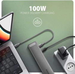 - Zasilanie PD 100 W – ładowanie laptopa przez hub