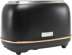 Stylowy toster HADEN Heritage w czarno‑miedzianym wykończeniu łączy elegancki design z praktycznymi funkcjami do codziennego użytku. Dzięki szerokim szczelinom poradzi sobie również z grubymi kromkami, a centrowanie pieczywa zadba o równomierne opieczenie. Oferuje 6 poziomów opiekania, funkcje rozmrażania, podgrzewania i natychmiastowego przerwania. Samowyłączanie, wysuwana tacka na okruchy oraz antypoślizgowe nóżki ułatwiają bezpieczne i czyste użytkowanie nawet w mniejszych kuchniach.