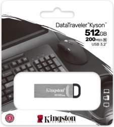 Stylowa i szybka pamięć USB Kingston DataTraveler Kyson oferuje pojemność 512 GB oraz interfejs USB 3.2 Gen 1 zapewniający szybki transfer danych z prędkością odczytu do 200 MB/s i zapisu do 60 MB/s. Wytrzymała metalowa konstrukcja bez zatyczki eliminuje ryzyko zgubienia, praktyczne oczko ułatwia noszenie, a niezawodność KINGSTON jest potwierdzona 5‑letnią gwarancją.