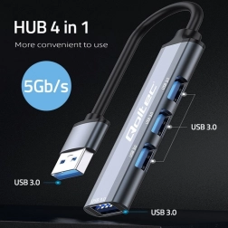 Praktyczny hub USB rozszerzy Twoje urządzenie o 4 pełnowymiarowe porty USB 3.0 do jednoczesnego podłączania peryferiów, takich jak mysz, klawiatura, drukarka, pendrive czy dysk zewnętrzny. Dzięki prędkości do 5 Gb/s wykonasz backup, kopiowanie i synchronizację bez zbędnego czekania.