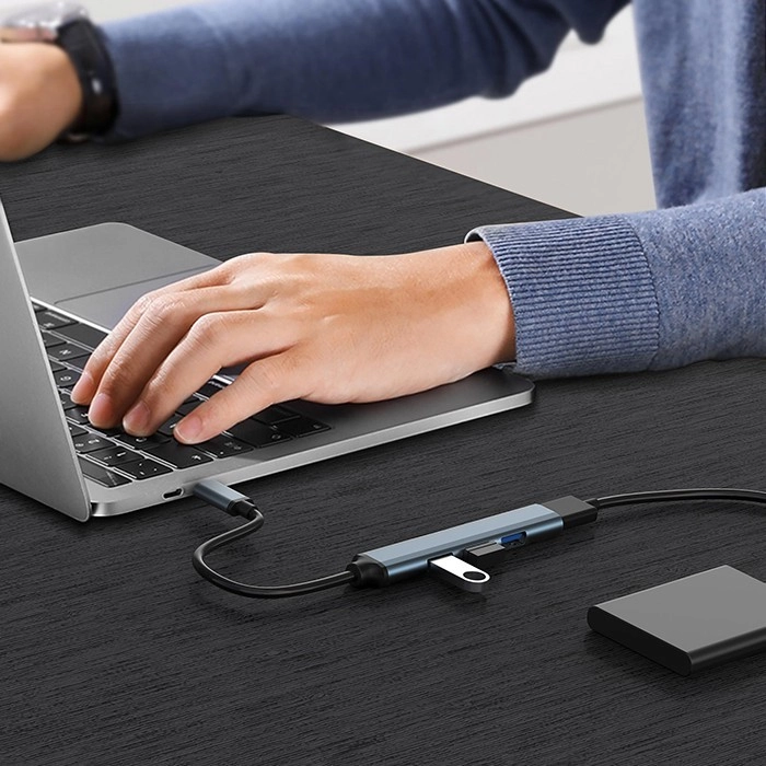 Podłącz wiele urządzeń jednocześnie i ciesz się szybkim oraz niezawodnym transferem plików oraz płynną współpracą pomiędzy sprzętami. Nasz hub umożliwia podłączenie do komputera dodatkowych urządzeń i akcesoriów, takich jak: mysz, klawiatura, drukarka, pendrive, dodatkowy monitor, projektor, słuchawki, głośniki i wiele innych. Z naszym urządzeniem nie musisz wybierać, które akcesorium odłączyć, aby podłączyć inne. Hub jest wyposażony w port USB 3.0 oraz 3 porty USB 2.0.