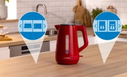 Doświadcz wygody i oszczędności czasu dzięki temu doskonałemu czajnikowi elektrycznemu Bosch. Jednym naciśnięciem przycisku otwórz pokrywkę dla łatwego napełniania wodą, a dzięki wskaźnikowi jednej filiżanki wody możesz podgrzać dokładnie tyle, ile potrzebujesz, co oszczędza energię. Wyjmowany filtr zapewnia doskonały smak Twojego napoju i płynne działanie czajnika.
