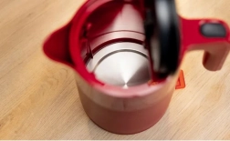 Praktyczne otwieranie pokrywy przyciskiem oraz szeroki otwór wlewowy ułatwiają napełnianie i czyszczenie. Przezroczyste okienko poziomu wody gwarantuje, że zawsze nalejesz właściwą ilość. O bezproblemową obsługę dba automatyczne wyłączanie przy wrzeniu lub zdjęciu z podstawy oraz ochrona przed pracą na sucho.