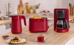 Stylowy czajnik elektryczny BOSCH MyMoment o pojemności 1,7 l w eleganckim czerwonym kolorze jest idealny do codziennego użytku. Oferuje wygodne otwieranie pokrywy przyciskiem, wskaźnik jednej filiżanki dla oszczędności czasu i energii, wyjmowany filtr antywapienny oraz czytelne okienko poziomu wody. Za bezpieczne działanie odpowiada potrójny system bezpieczeństwa z automatycznym wyłączaniem.